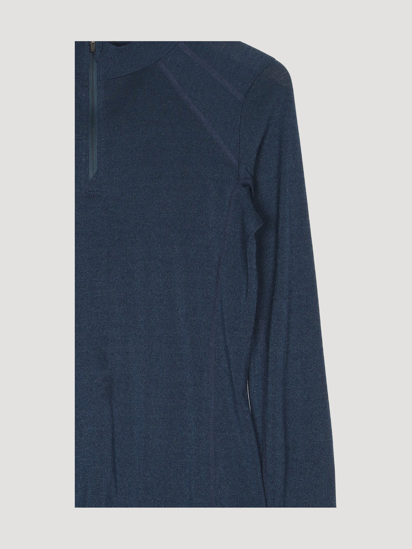 Lieblingsteil fürs Sportprogramm: Hautsympathisches Langarm-Basic mit leichter Melange aus einer sehr weichen und warmen Schurwoll-Seide-Mischung, die durch ihre temperaturausgleichende Wirkung perfekt für den Sport geeignet ist. Mit schmalem Stehkragen, dezentem Sportzipper und leicht gerundetem Saum. Die Flatlocknähte an den Schultern betonen die körpernahe Form. Mit kleinem Label am Ärmelsaum.
