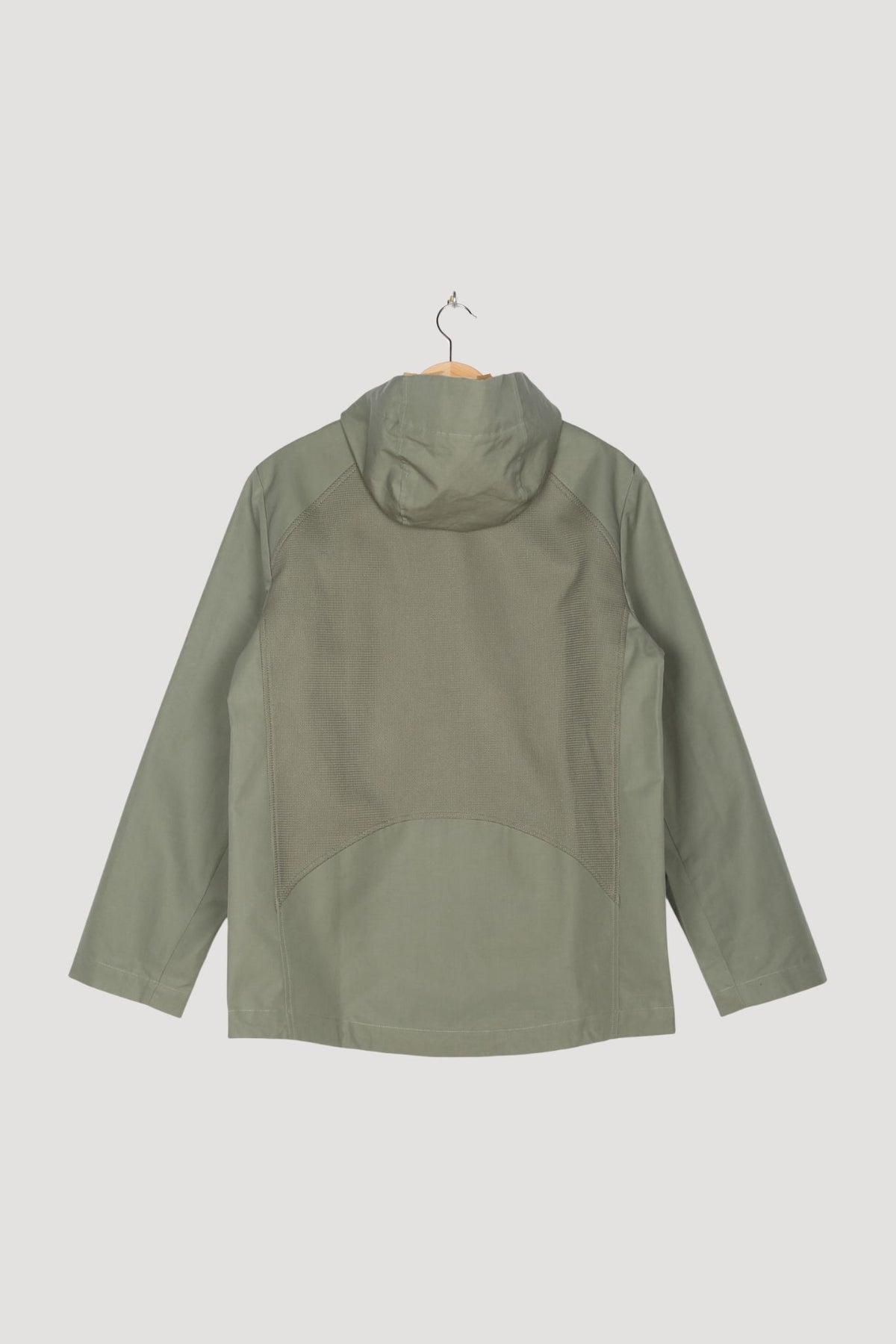 Saison-Highlight mit innovativer Material-Kombination für besten Schutz vor Wind und Regen. Innovativ durchdacht bis ins kleinste Detail: Der Material-Mix aus unterschiedlich dichten Gewebestrukturen ermöglicht einen optimalen Feuchtigkeitstransport bei gleichzeitig höchster Atmungsaktivität. Die Waffelstruktur wirkt hierbei wie eine natürlich-nachhaltige Imprägnierung mit Lotuseffekt, die leichten Regen einfach abperlen lässt. Das waschbare Obermaterial hat einen flexiblen Hardshell-Charakter und ist super dicht gewebt, damit Wasser erst gar nicht eindringen kann. Zusätzlich bieten Details wie ein Schild an der Kapuze, Reflektorkordeln mit Stopperm, integrierte Zipper-Taschen, das leichte Meshfutter und eine Innentasche perfekten Tragekomfort für einen aktiven Start in die Draußenzeit.