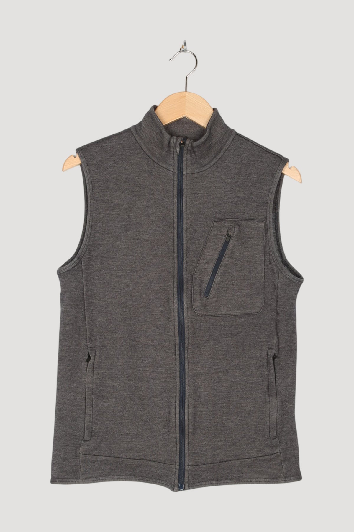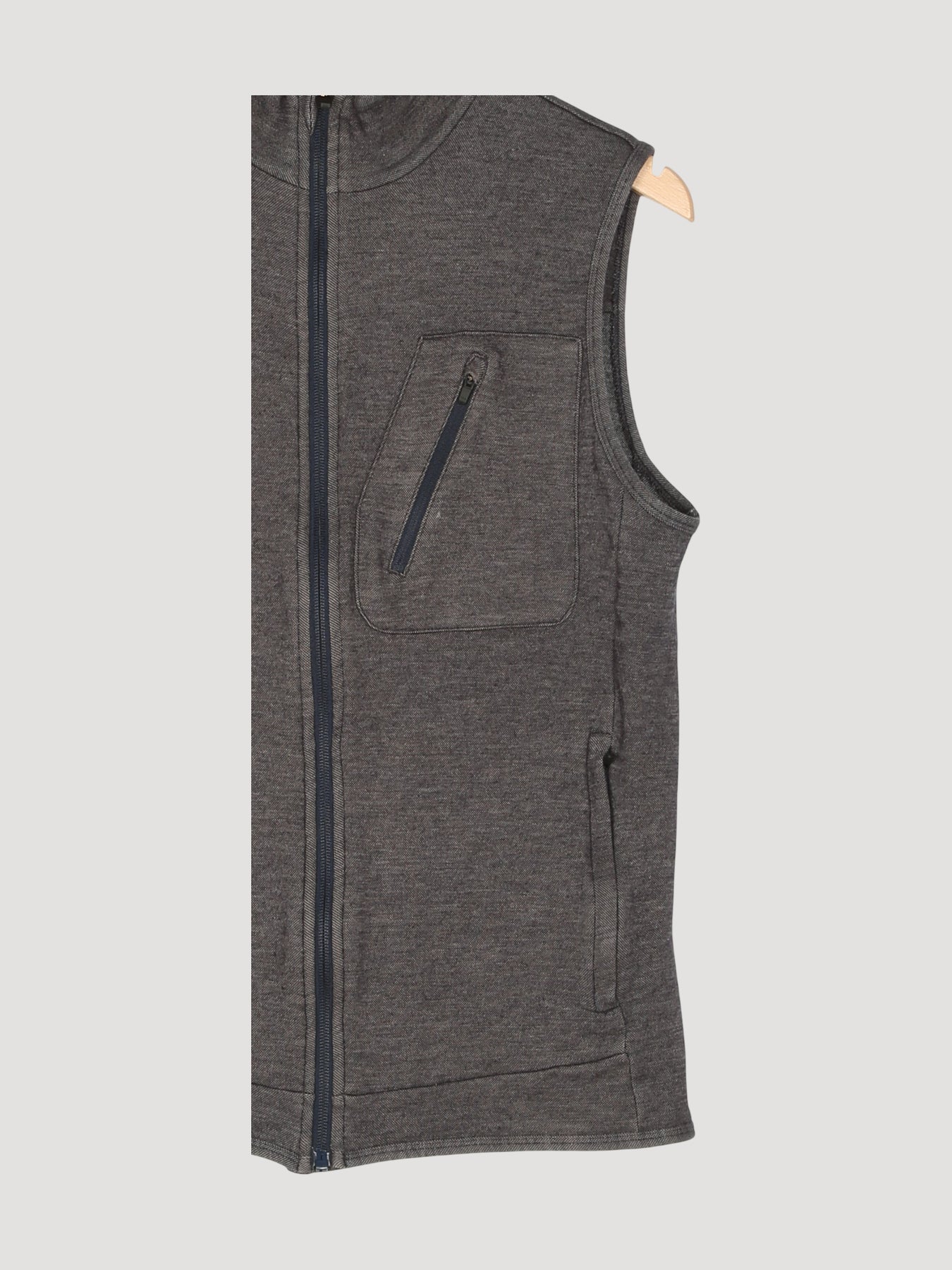 Funktional, formstabil und elastisch: Wolljersey mit Bio-Baumwolle vereinigt beste Trageeigenschaften. Dynamische Teilungsnäht, auch im Rücken, ergänzen die körpernahe Passform mit sportiven Details. Ausgestattet mit Kinnschutz und Windfang am Reißverschluss sowie flachen Zip-Taschen mit Mesh-Eingriff eignet sich diese Weste zum Jogging und alle anderen Aktivitäten im Freien. Mit praktischer Brusttasche.