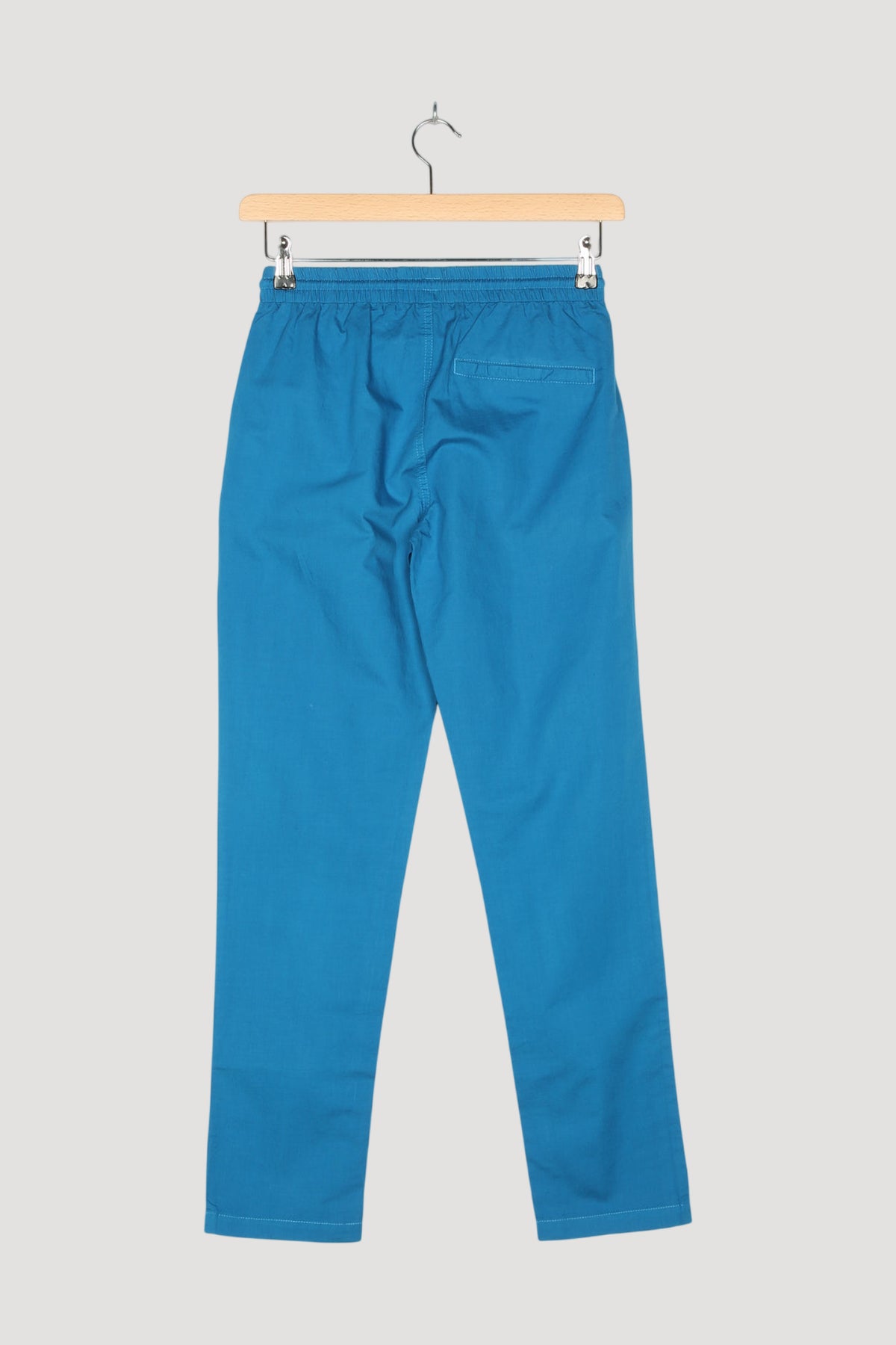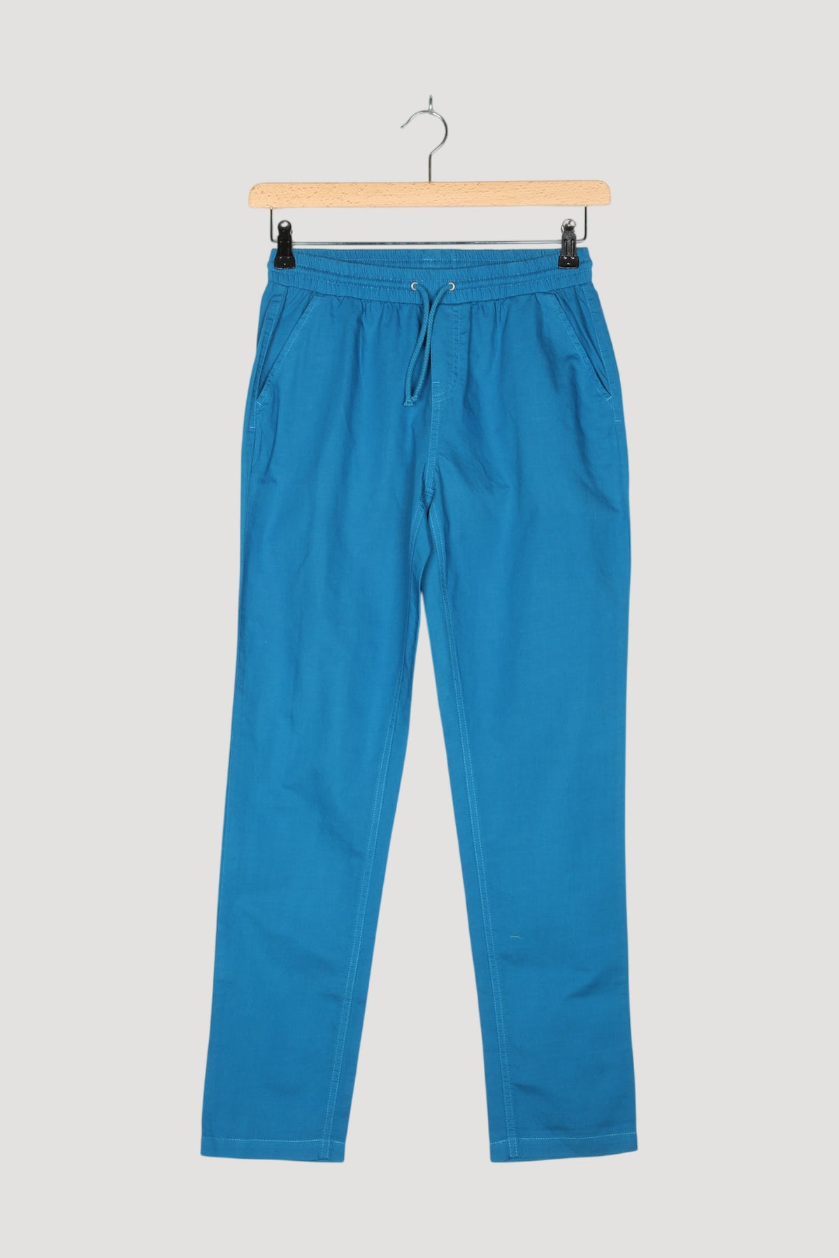 Alles, was eine waschechte Tobehose an Eigenschaften mitbringen sollte: Angenehm leicht, durchs Vorwaschen weich und trotzdem robust dank Hanf-Anteil. Ein Gewebemix, wie gemacht für wilde Abenteurer. Mit Eingrifftaschen, angedeuteter Paspeltasche am Gesäß und Gummibund mit Kordel zum Regulieren der Weite. Gerempelt wirkt dieser Spielkamerad noch einen Tick lässiger.