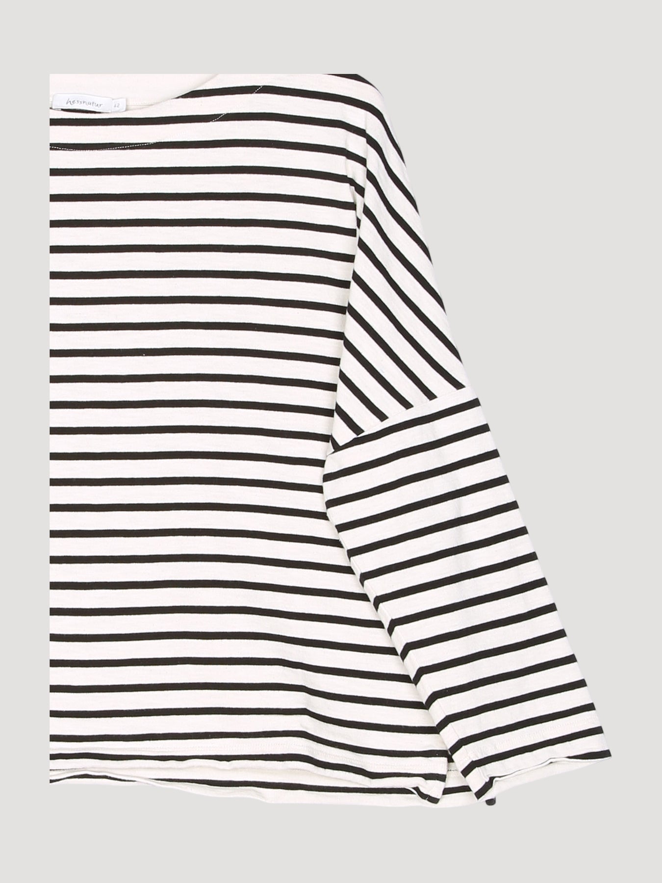 Kein Sommer ohne Ringel! Ach, was sagen wir: Kein Kleiderschrank ohne Ringelshirt. Deshalb haben wir dieses Langarmshirt auch aus einer Baumwoll-Qualität gemacht, die etwas schwerer ist. Etwas für das ganze Jahr. Denn leger geschnitten im Boxy Cut passt dieser Style mit überschnittener Schulter und 7/8 Arm gleichermaßen zu kurzen wie zu langen Hosen – und sieht dabei irgendwie immer entspannt und fast nach Urlaub aus. Glauben Sie nicht? Probieren Sie es aus. Das fühlt sich gut an. Unsere Lieblingsfaser, die Bio-Baumwolle , ist nicht nur wundervoll weich, sondern auch atmungsaktiv, saugfähig und pflegeleicht. Wussten Sie, dass Bio-Baumwolle ohne chemische Entlaubungsmittel auskommt? Das ist einer der Unterschiede, die dafür sorgen, dass die Umwelt geschont wird und Ihre Haut aufatmen kann.