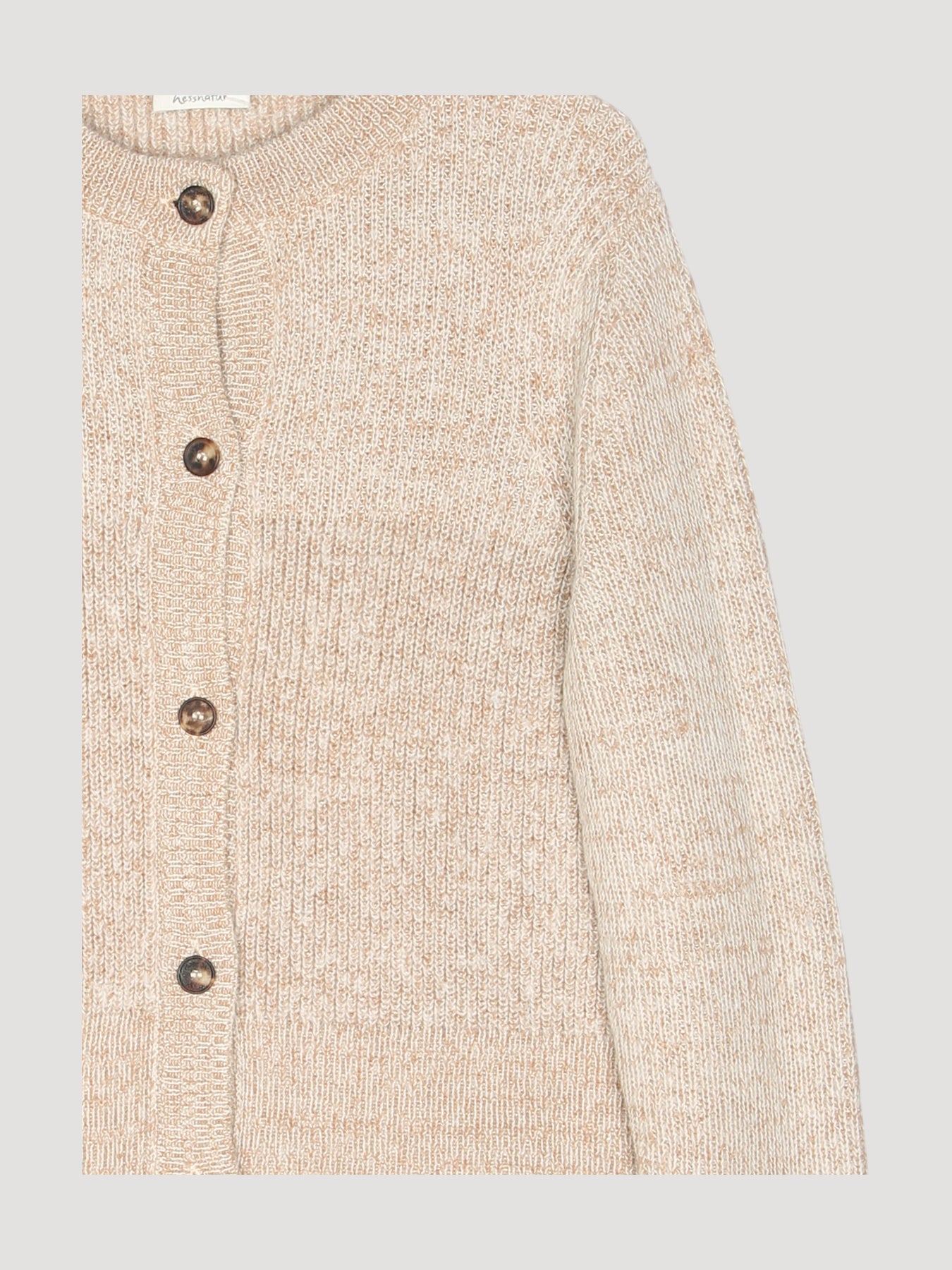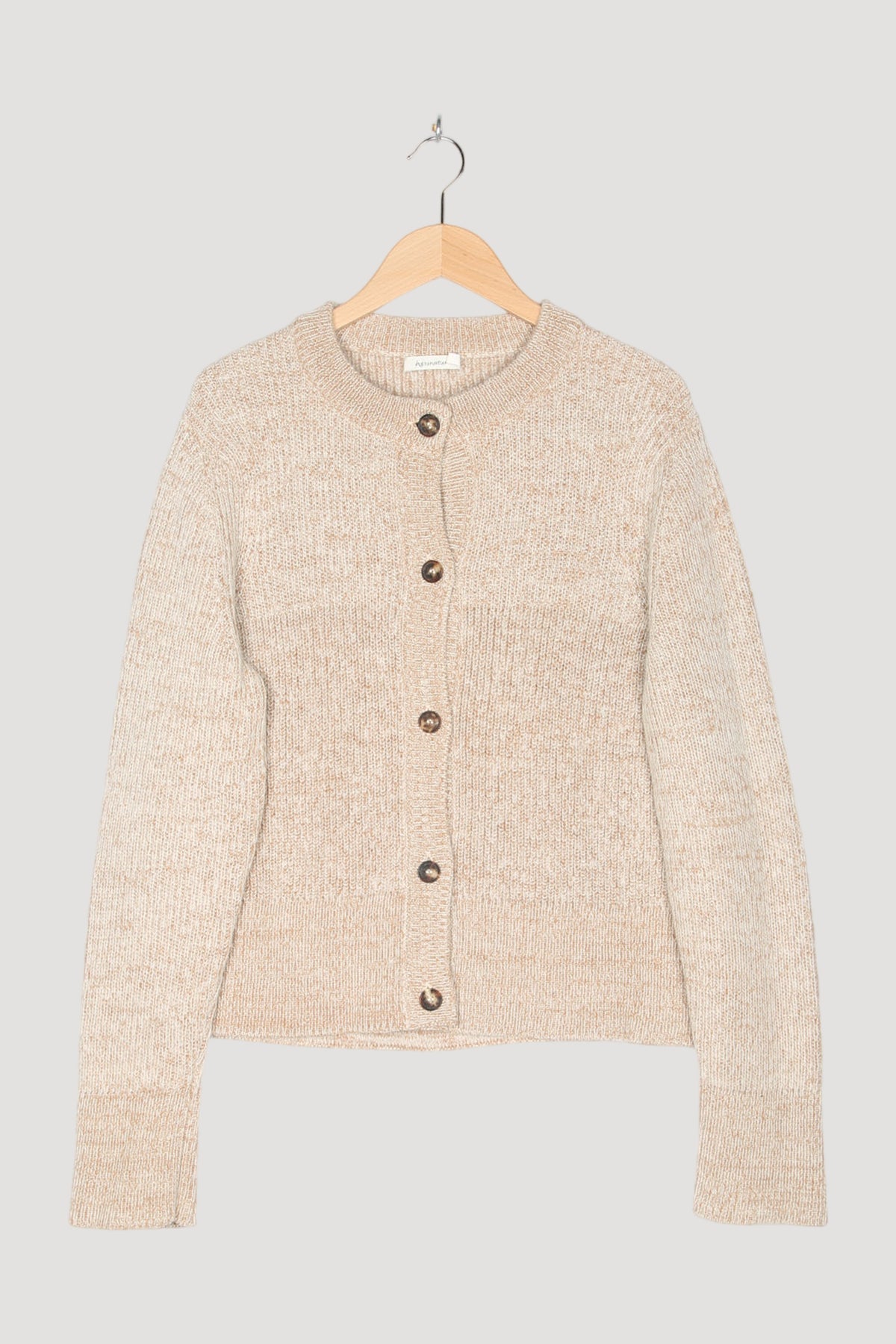 Secondhand Strickjacke aus ungefärbtem Alpaka mit farbig gewachsener Bio-Baumwolle