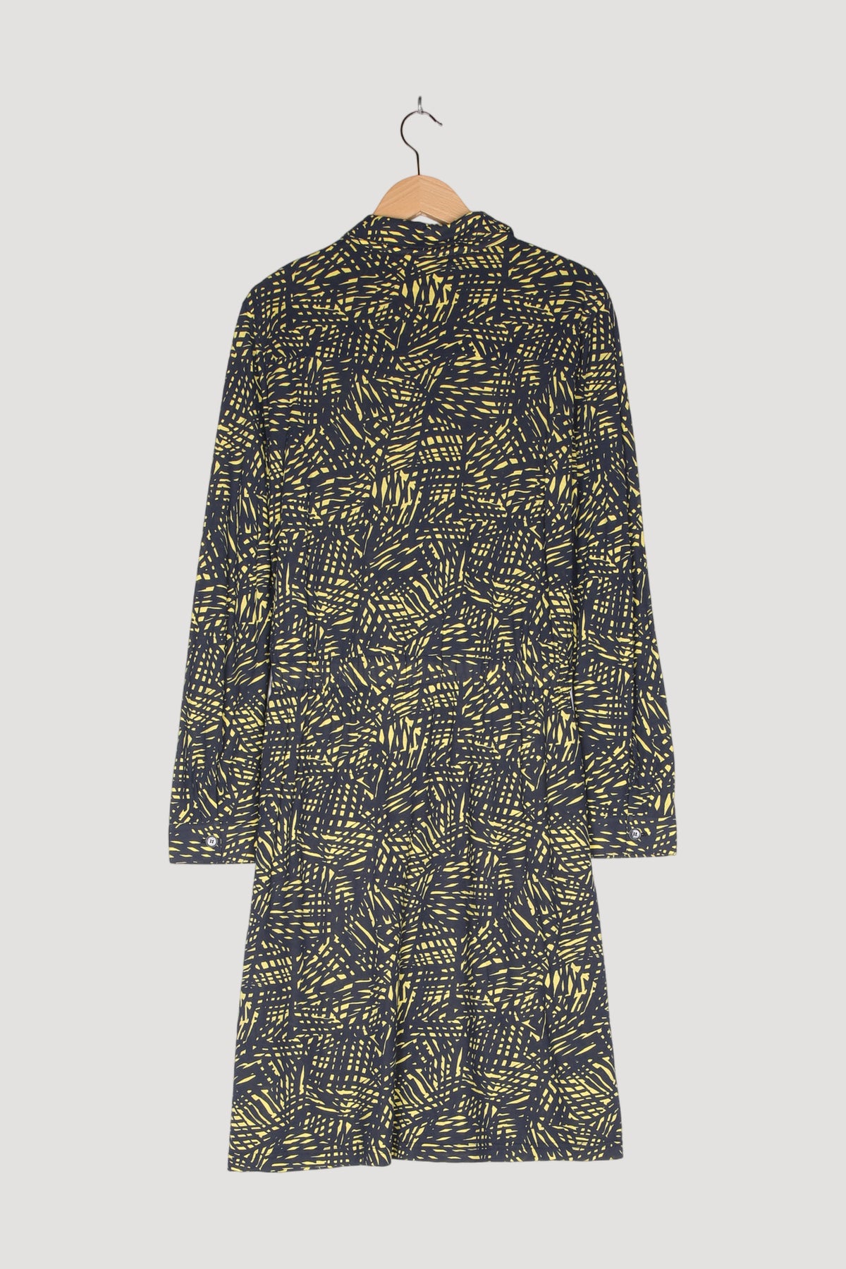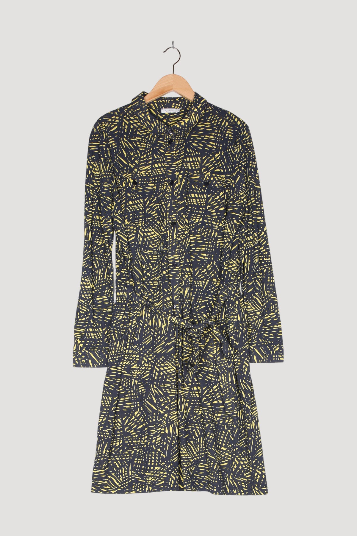 Eins für die Großstadtsafari oder für ganz weit weg: Der unkomplizierte Hemdblusen-Look aus softem Singlejersey spielt mit den klassischen Blusenelementen wie Manschetten, Hemdkragen und der durchgehenden Knopfleiste. Der Gummizug in der hinteren Taille und der passende Bindegürtel setzen dem Klassischen eine entspannte Note entgegen. Dynamisch setzt der kontrastige Druck das Tüpfelchen auf das i – und lässt uns dieses vielseitige Kleid an vielen Orten dieser Welt vorstellen. Mit aufgesetzten, gesteppten Eingrifftaschen.