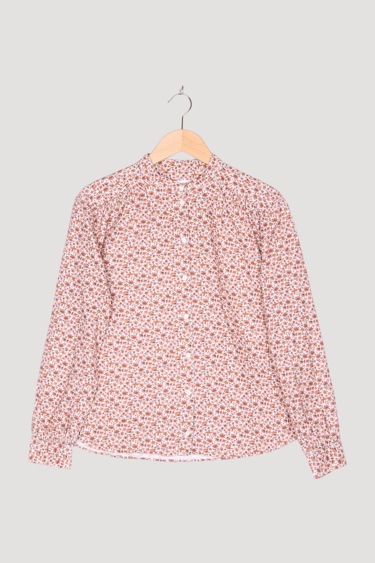 Kräftig und zart präsentiert sich das Sternblumenmuster dieser modischen Bluse in reiner Bio-Qualität. Der softe Flanell greift sich warm und hautschmeichelnd, subtile Raff-Details addieren indes eine feminine Note. Mit Perlmuttknöpfen.