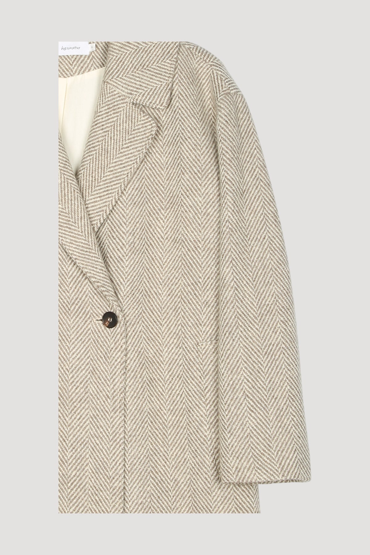 Ganz viel Natur transportiert dieser stilvolle Fischgrät Mantel aus unserem feinen Mongolischer Merino. Das kommt passend in unserer LIMITED BY NATURE- Linie ganz rein und ungefärbt, so, wie es die Natur gewollt hat. Leicht oversized unterstreicht der Mantel die feminine Silhouette mit überschnittener Schulter und geraden Linien in Midi-Länge. Das moderne Design wird durch den breiten Fischgrat und die markanten Hornknöpfe authentisch und dabei natürlich elegant. Ein Premiumteil, von dem Sie lange etwas haben werden.