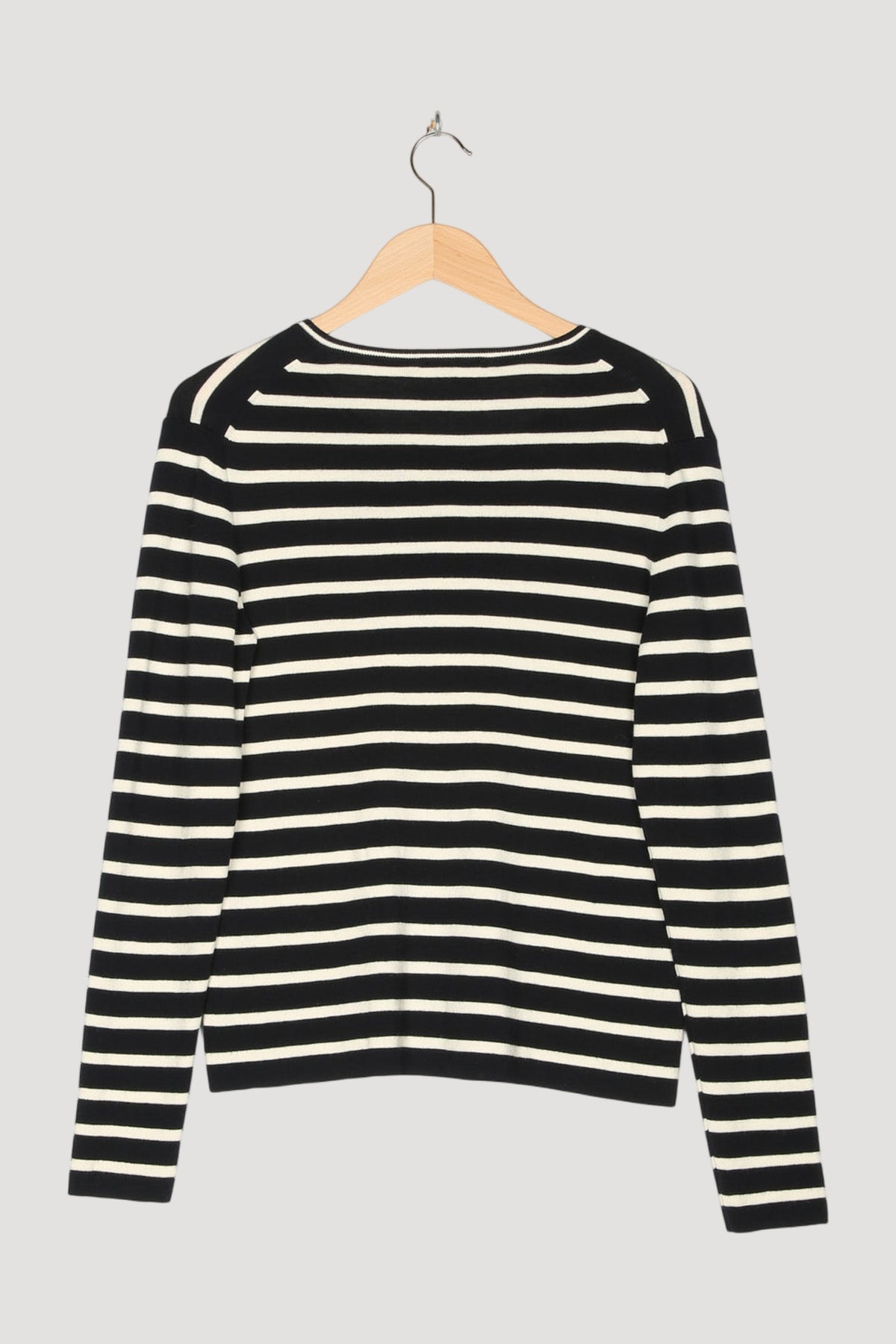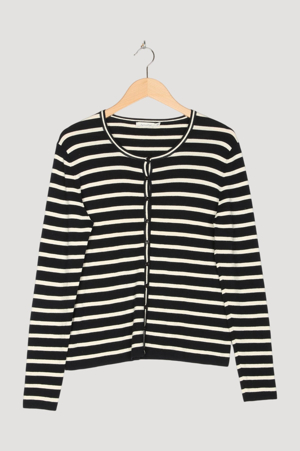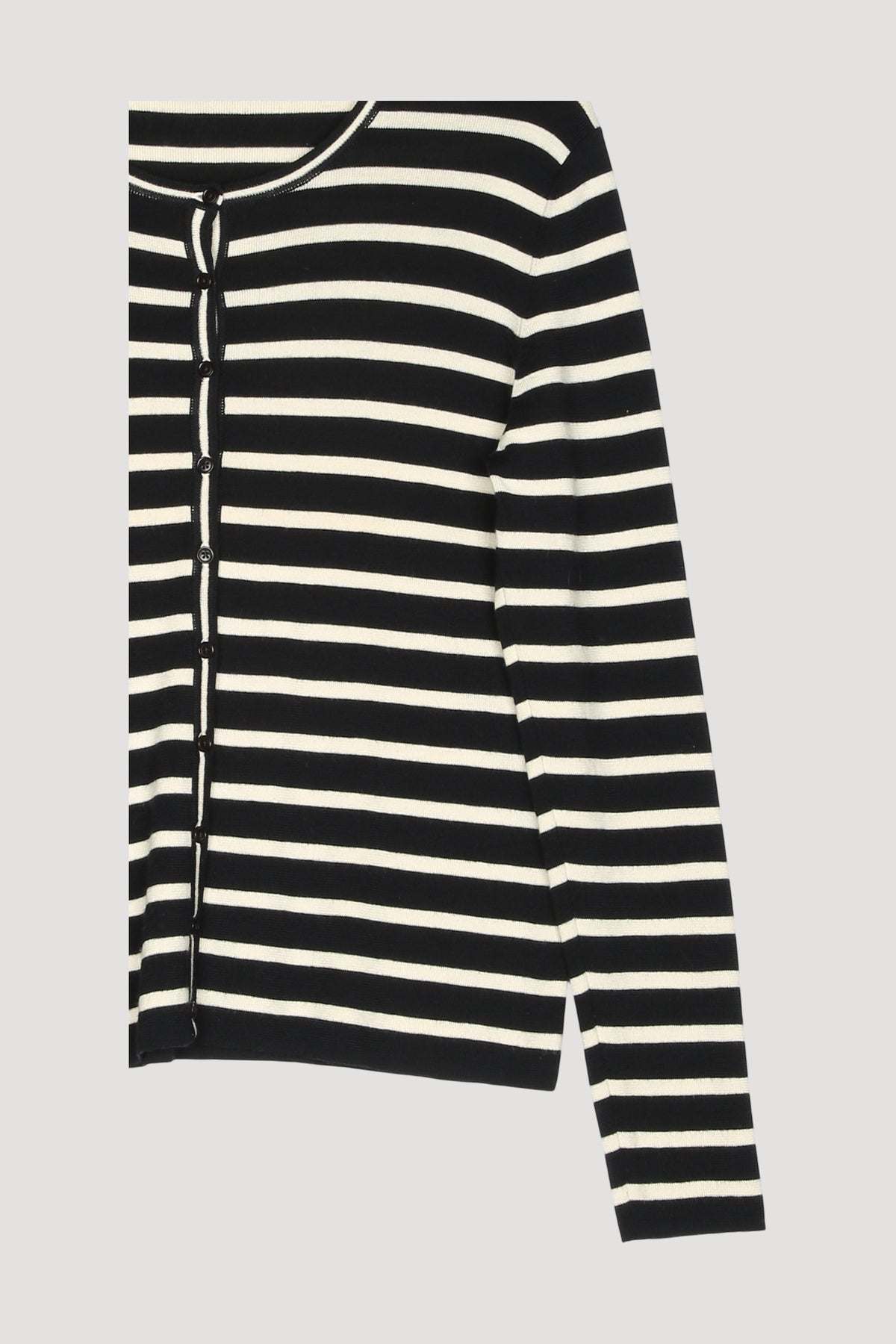 Ein Klassiker, der für sich spricht: unsere schmale Strickjacke aus feinem Garn und Streifen. Aus bester und besonders nachhaltiger Bio-Merinowolle gefertigt, kommt das Modell in einer feinen und zugleich stabilen Feinstrick-Qualität, die in puncto Optik und Tragekomfort restlos überzeugt. Besondere Liebe zum Detail zeigen die ebenfalls fein gestreift gestrickten Blenden. Mit Steinnussknöpfen.